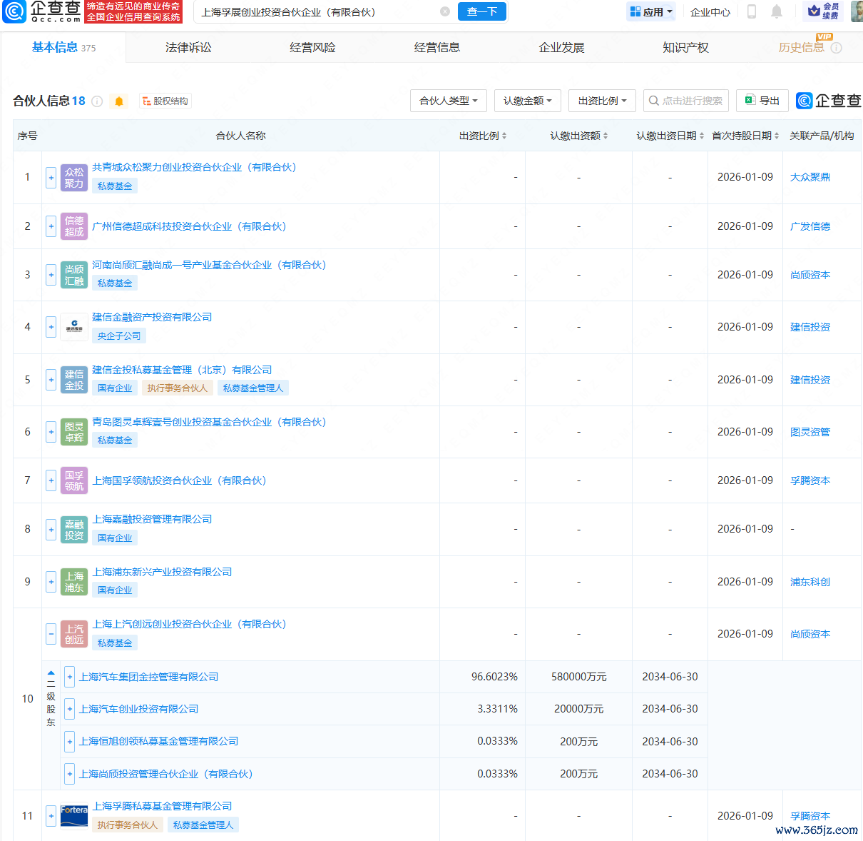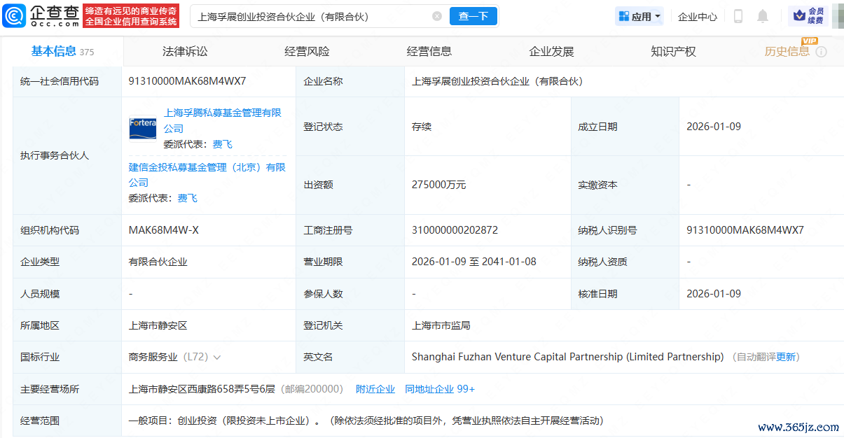 近日,上海孚展创业投资合伙企业(有限合伙)成立,出资额27.5亿元,经营范围包含:创业投资。企查查股权穿透显示,该合伙企业由建信金融资产投资有限公司、上汽集团旗下上海上汽创远创业投资合伙企业(有限合伙)等共同持股。